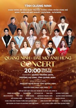 Theo đó, chương trình nghệ thuật (concert) do Sở Văn hóa, Thể thao và Du lịch chủ trì phối hợp với Tập đoàn Công nghiệp Than – Khoáng sản Việt Nam, Binh đoàn 19 – Tổng Công ty Đông Bắc, Trường Đại học Hạ Long, Bộ Chỉ huy Quân sự tỉnh, Công an tỉnh và một số doanh nghiệp, địa phương liên quan dự kiến sẽ tổ chức vào ngày 12/11 tại Quảng trường 30/10, phường Hạ Long.